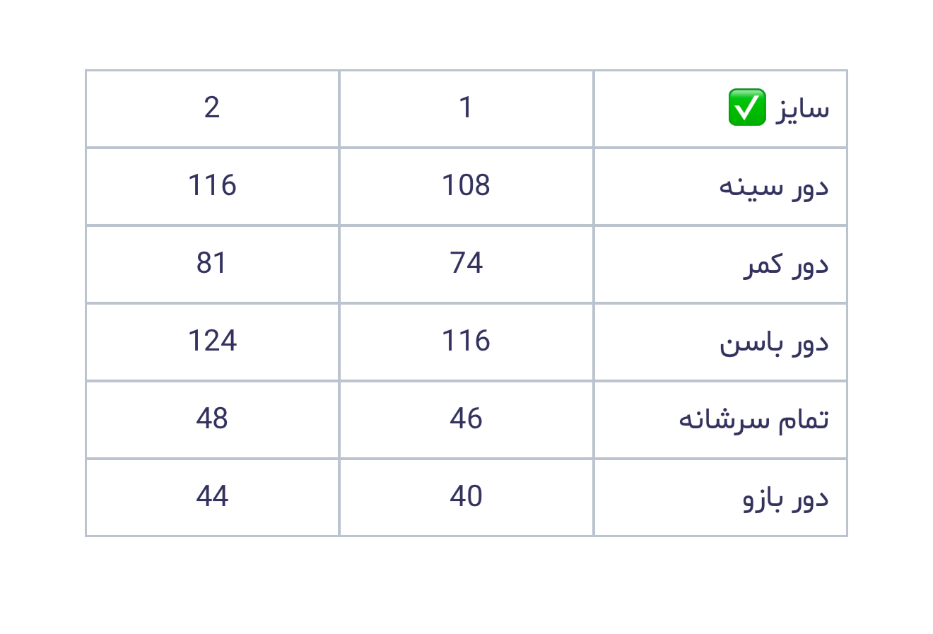 جهت انتخاب سایز به اندازه های محصول توجه کنید👇